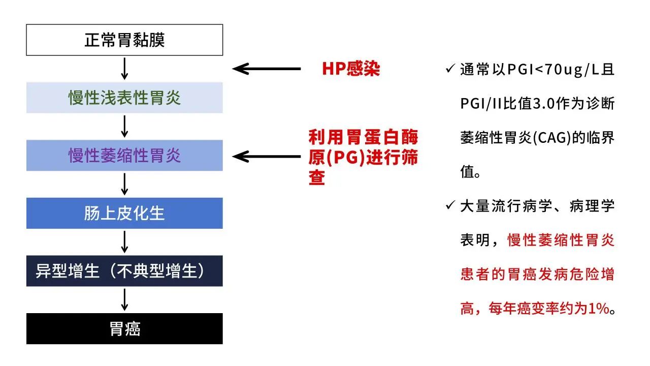 根據(jù)PG檢測結(jié)果評估胃粘膜炎性狀態(tài)和損傷程度,排除或確認(rèn)胃癌高風(fēng)險(xiǎn)。
