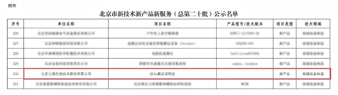 喜訊 | 九強生物抗Xa入選北京市新技術(shù)新產(chǎn)品新服務(wù)名單